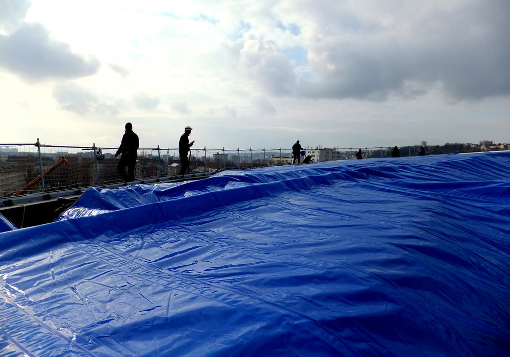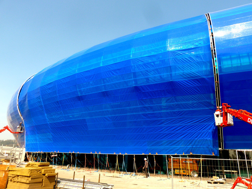 Montageunterstützung beim Bau der Gebäudehülle mittels ETFE-MembraneEs wurde die europaweit grösste Single-Skin-ETFE-Folie verbaut!